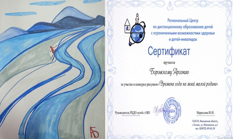 Боровский А. принял участие в интереснейшем конкурсе! Он изобразил скоростной спуск и назвал картину «С ветерком на лыжах с Милой горы». Поздравляем! Желаем дальнейших успехов!